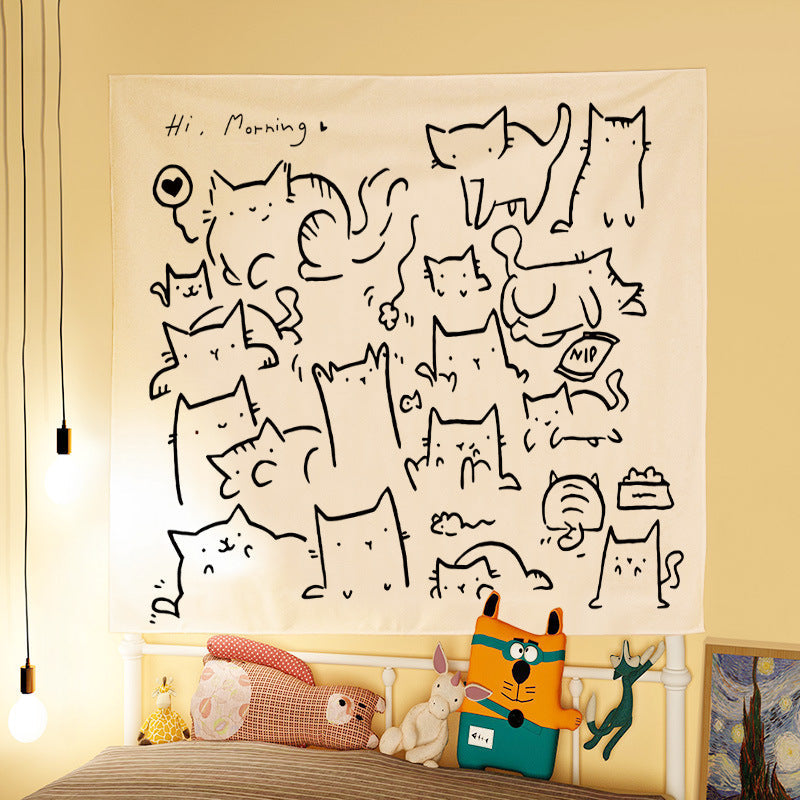 • Este tapiz de gato súper lindo tiene un diseño minimalista que presenta gatos en blanco y negro y completamente adorables.