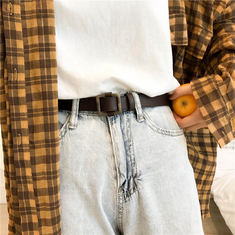Cinturón de PU fino con hebilla cuadrada metálica pequeña, negro y marrón