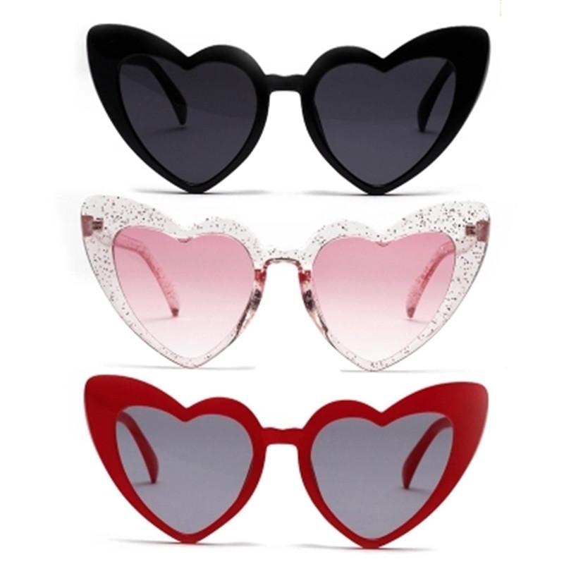 Gafas de sol modernas sin marco con forma de corazón y purpurina