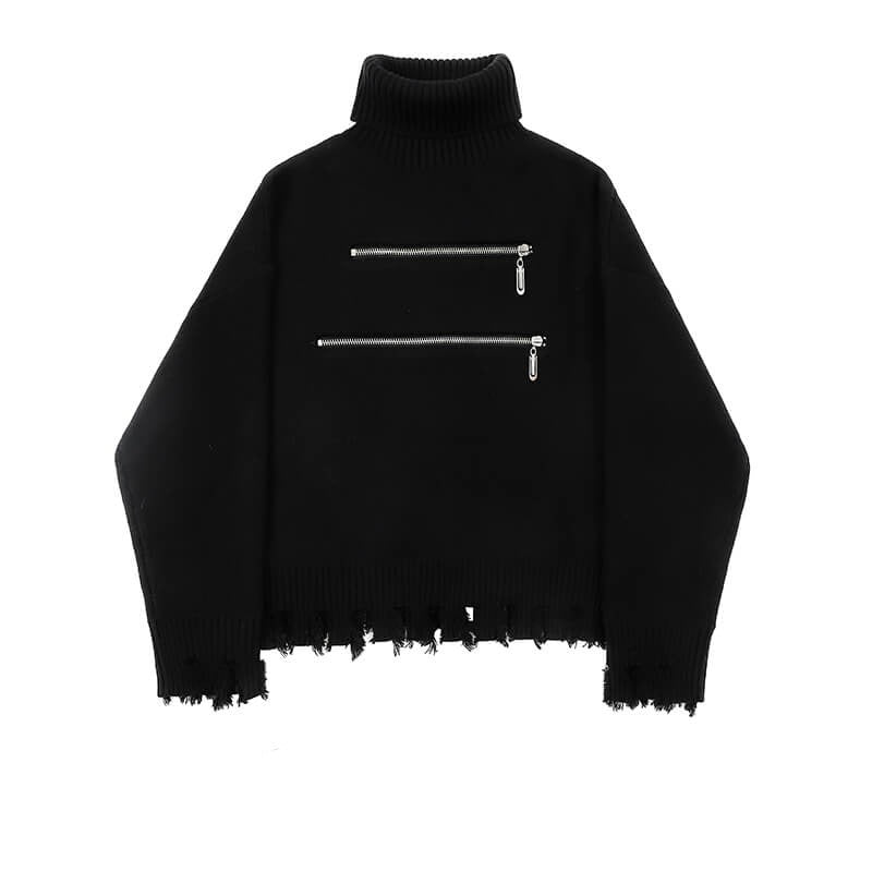 Mejora tu estilo invernal con nuestro suéter negro estético de cuello alto, tejido y doble cremallera frontal. En un elegante color negro, este suéter combina a la perfección el estilo urbano con un toque grunge. Confeccionado con algodón de alta calidad, es un básico invernal que combina moda y comodidad. Envío gratuito en EE. UU. y a nivel mundial.