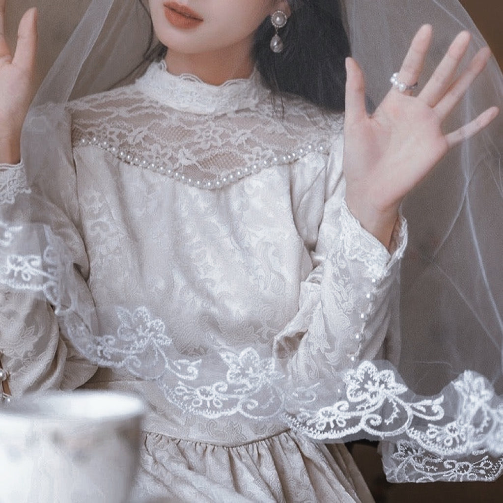 Este exquisito vestido Callina está inspirado en la elegancia y la grandeza atemporales de la época victoriana. Su confección en satén blanco, sus detalles de perlas, su cuello alto, sus mangas abullonadas y sus detalles de encaje harán que cualquier novia se sienta como una auténtica musa vintage. Con su suave tejido de satén y su impresionante silueta, este vestido será la elección perfecta para una boda sofisticada e inolvidable o una fiesta de temática vintage. Largo midi. El color del vestido es blanco. (Las imágenes tienen filtros vintage activados).