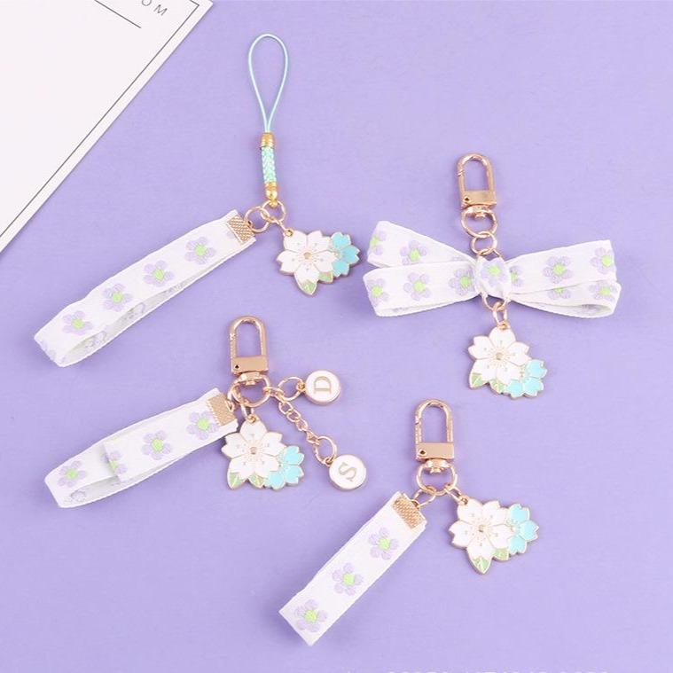 • Este llavero de cinta con flores gemelas violetas kawaii. El diseño es lindo e infantil y la expresión es vívida.