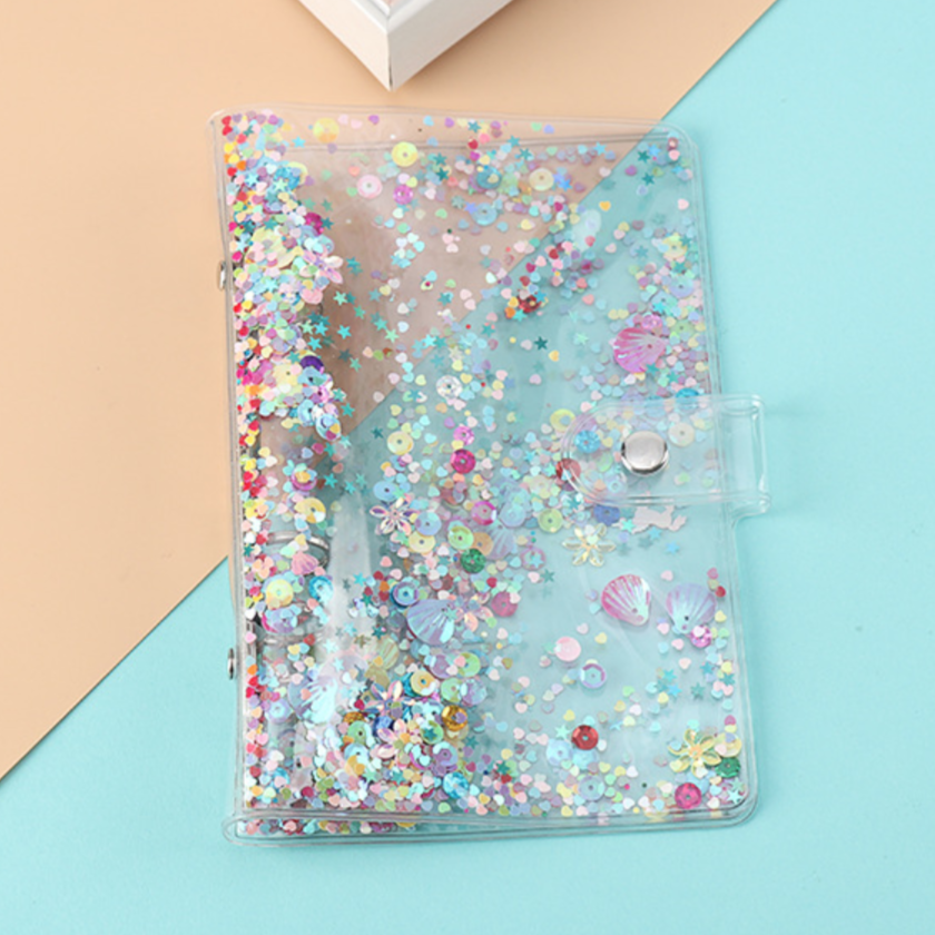 Use kawaii 6 ring binder A5A6 sequin cover to add fun to your diary and notepad. Multicolored shell sequins are a feature of this cover.