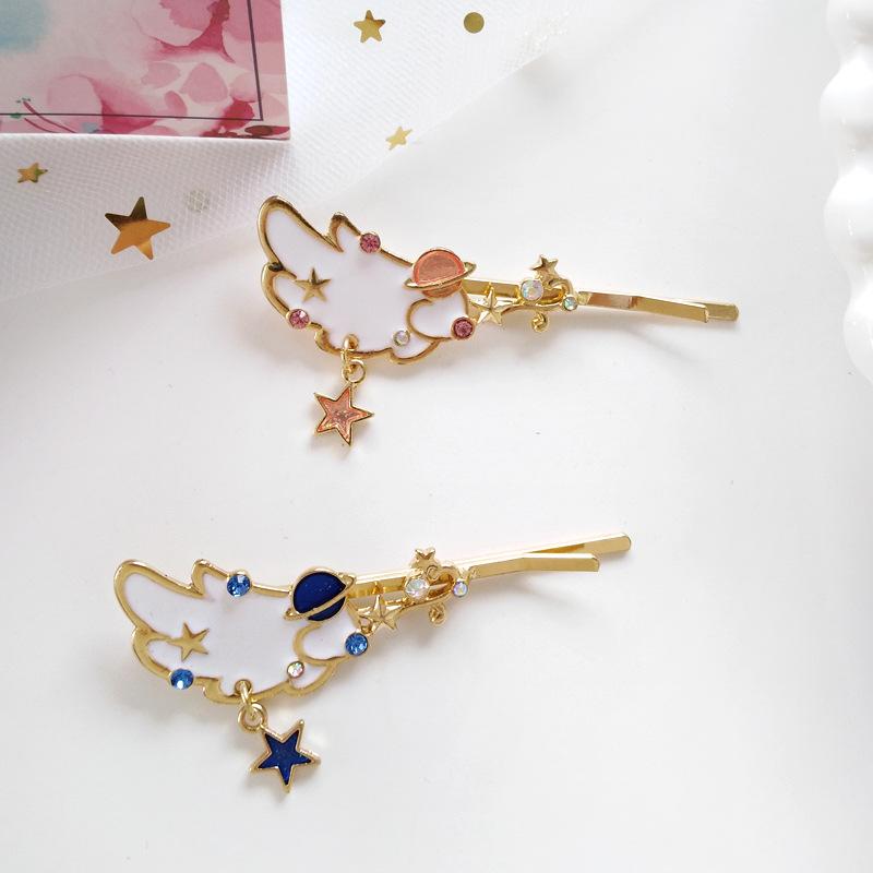 These kawaii angel's wings hair clips.angel's wings become bright in the night.the stars in the night sky are dazzling.there is a unique mood.