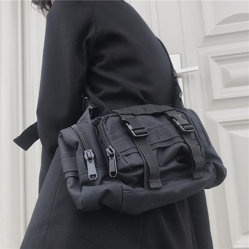 Black Canvas Multi Pockets Rave Shoulder Bum Bag