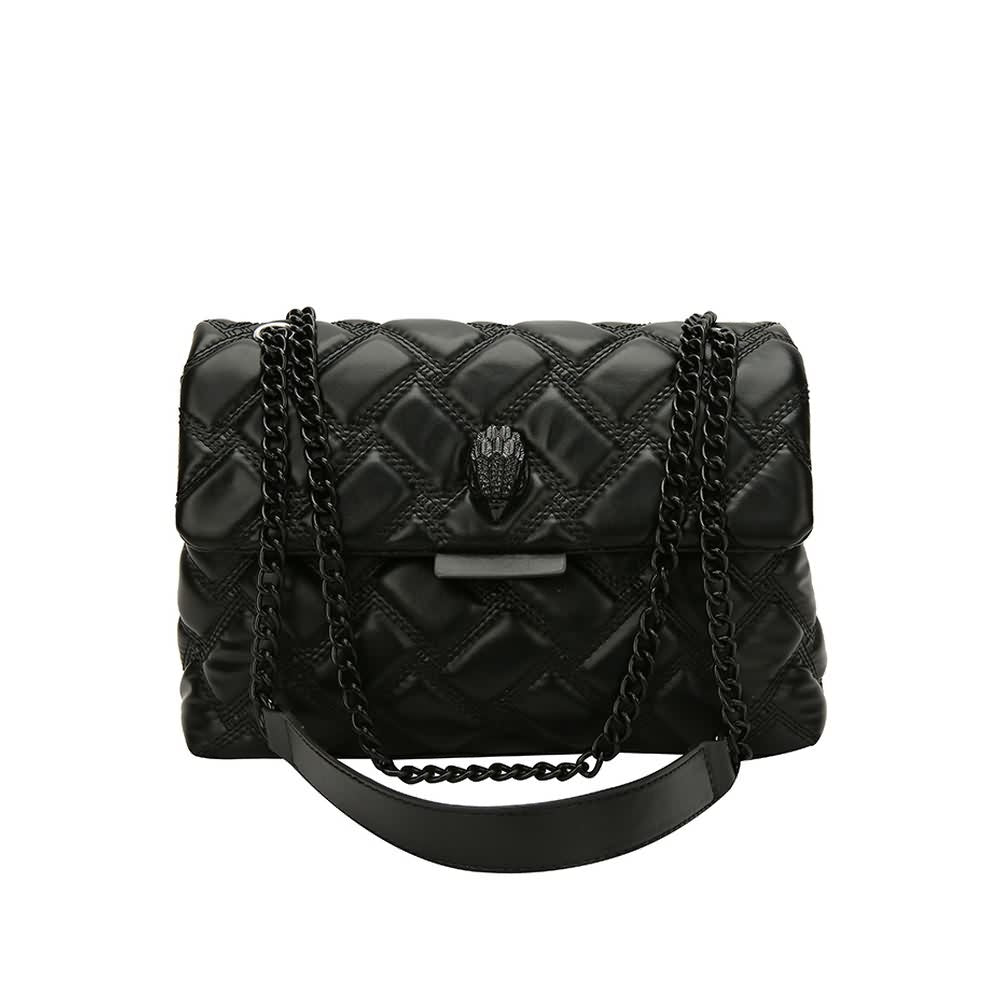 Discover stylish edgy elegance with our Black PU Leather Quilted Shoulder Bag. Secure your essentials with the magnetic snap closure and elevate your look with the sophisticated eagle head detail. The versatile double chain shoulder strap offers multiple styling options. making it a unique choice for modern fashionistas. Embrace your inner goth punk style with this essential accessory that stands out from the crowd.