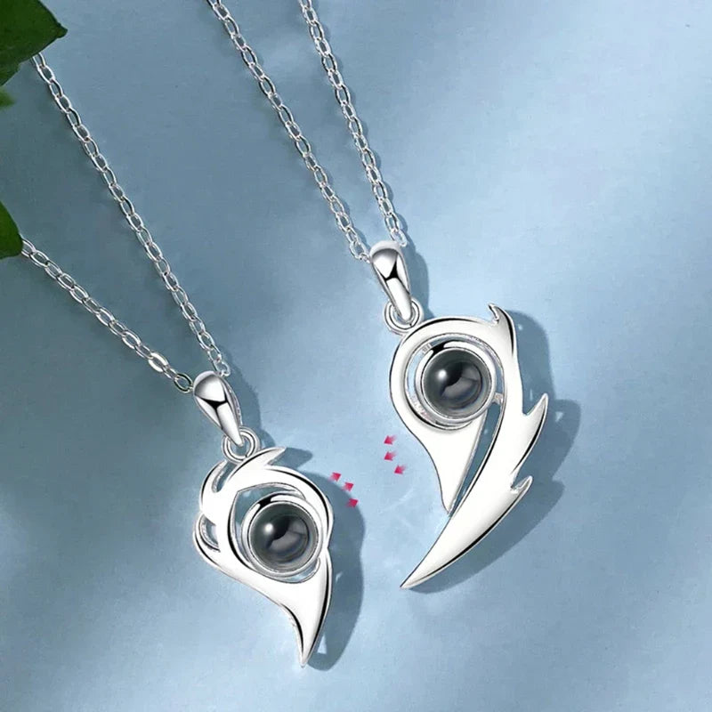This Couple Love Pair Magnetic Necklace set symbolizes the unique and magnetic connection between two people. Each necklace features a pendant that. when brought together. connects with a magnetic clasp. representing the inseparable bond of love. Crafted with care and designed to be shared between partners. friends. or family members. these necklaces serve as a constant reminder of the special relationship shared. The elegant design makes it a versatile accessory. suitable for daily wear or special occasions. It's a meaningful gift that beautifully expresses love. unity. and togetherness.