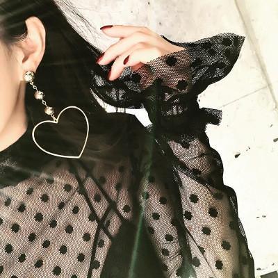 "Vintage and very feminine golden metallic heart long chain earrings."