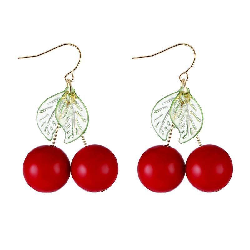 Red Cherry Leaf Cute Earrings