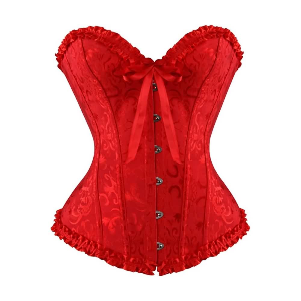 Elevate your style with the Red Gothic Ruffle Trim Hourglass Overbust Corset. This precision-crafted overbust corset boasts an hourglass shape and eyelet lace-up tie back for a perfect fit. Featuring plastic boning for support. the red color and ruffle trim add sophistication. Made with premium-quality polyester and spandex for ultimate comfort. Perfect for enhancing your fashion style with a touch of elegance.