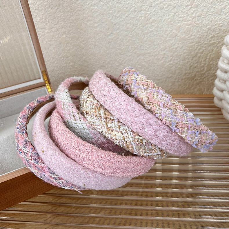 • The kawaii romantic pink tweed knit headband is decorated with soft plush.will take you into a lovely atmosphere.