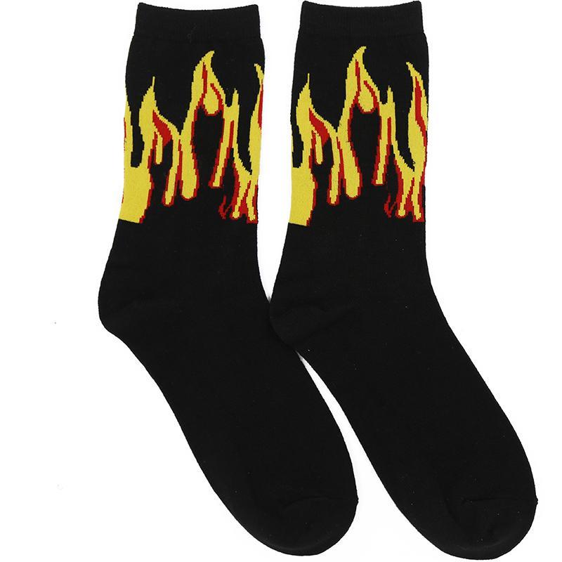 Sale Fire Flame Ankle Long Black Cotton Socks