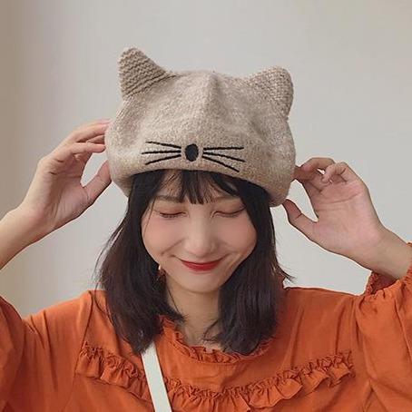 👩🎨Sweet kawaii cat ear beret hat. warm care. gentle wrapping. Double-layer plus velvet keeps warm. the knitting elasticity is naturally not tight. Cute ear shape. playful and vivid.