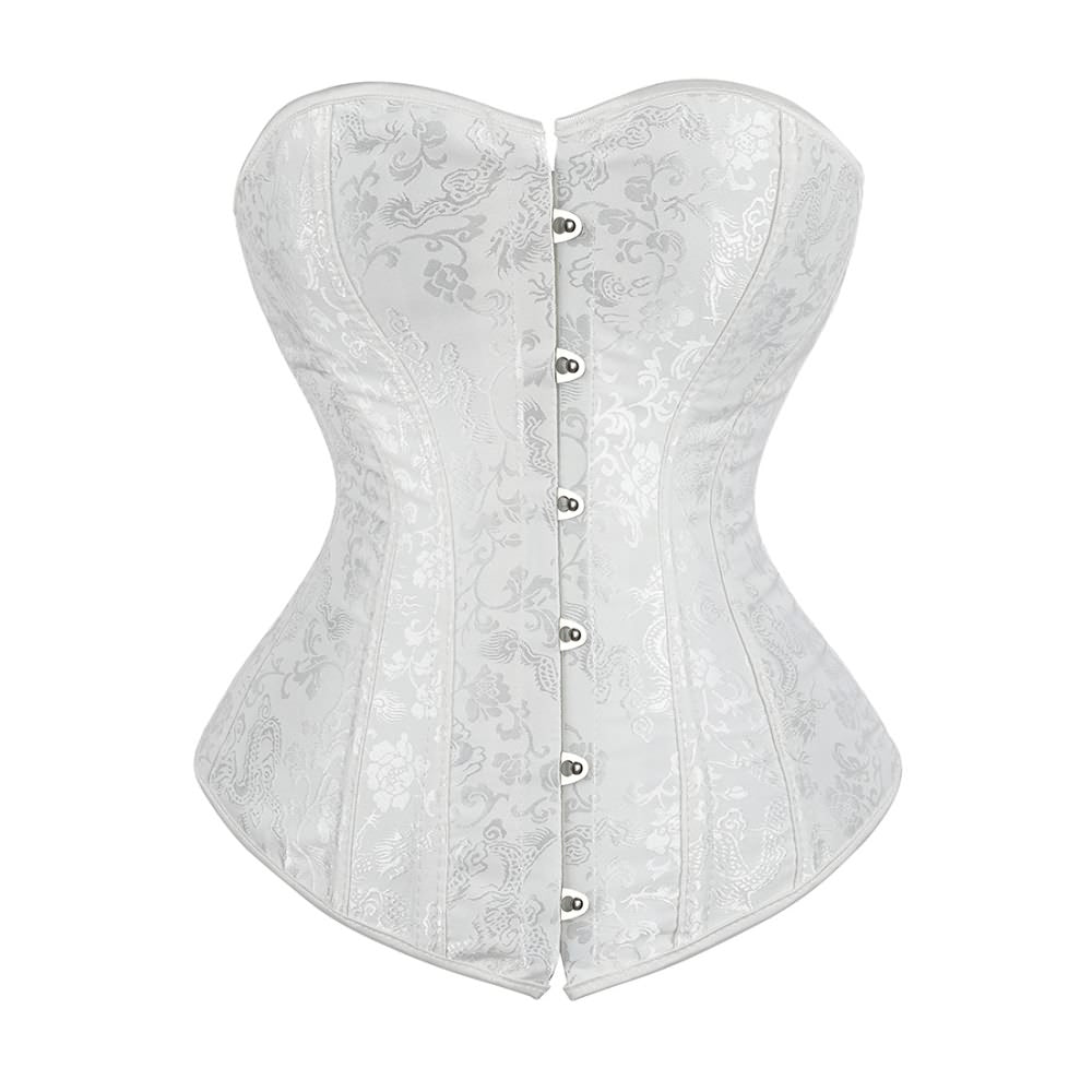 Achieve a classic look with the White Victorian Gothic Hourglass Overbust Corset. Made from a premium polyester and spandex blend. the lace-up tie back exudes elegance. Featuring an intricate floral print for a touch of romance and femininity. this corset is ideal for those who value luxury and style.