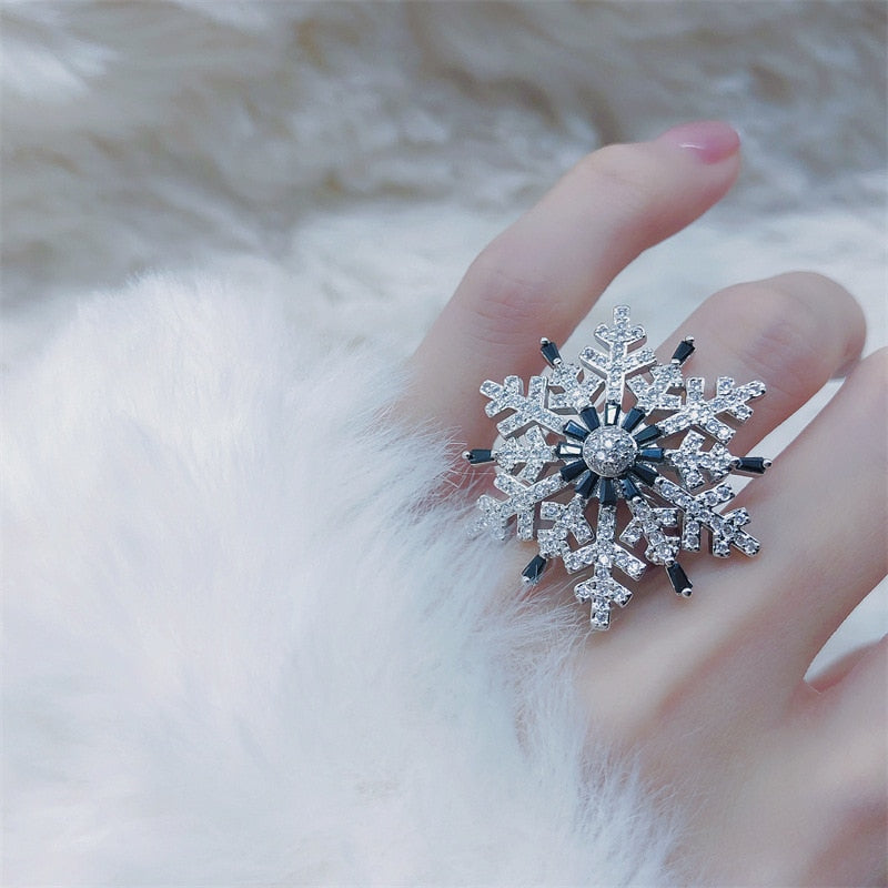 Set your winter wardrobe on fire with this stunning Winter Snowflake Spinning Ring! This beautiful ring is encrusted with shimmering white crystals and features an elegant snowflake centerpiece. The eye-catching snowflake pendant. the center of attention. spins freely in its setting for an ever-changing look.