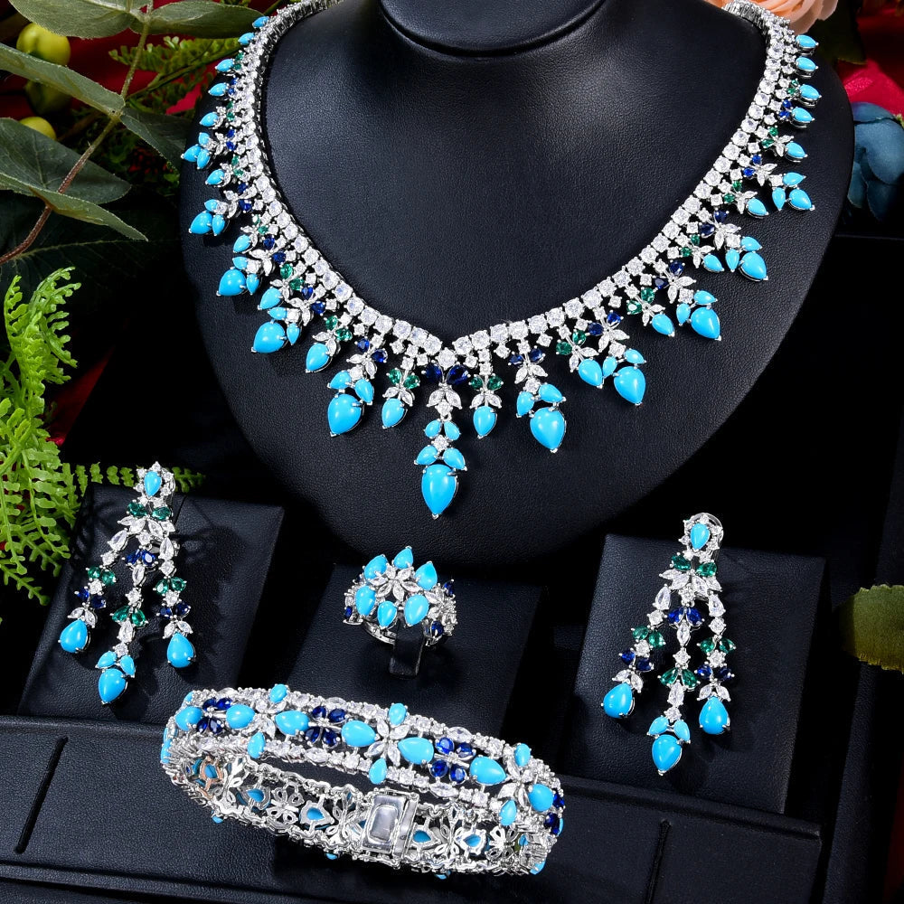 1xZircon Crystal Turquoise Luxury African Jewelry Gift Set